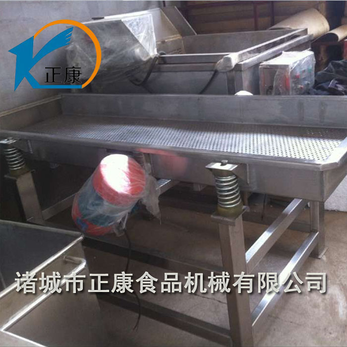 振動瀝水機(jī)又叫瀝水振動篩是一種常用的輕型振動瀝水設(shè)備,該直線振動瀝水篩是利用兩臺轉(zhuǎn)向相反的振動電機(jī)激振的原理,使物料在篩面上作跳躍式直線運動。本機(jī)廣泛應(yīng)用于糧食、蔬菜、食品等各行各業(yè)中,適用于各種物料不同程度的分級和脫水作業(yè)。該設(shè)備也用于巴氏殺菌冷卻后的食品包裝袋表面除水,及蔬菜清洗后表面水分的去除。經(jīng)振動瀝水后,大部分水滴已被去除,剩余水份再經(jīng)風(fēng)干機(jī)吹干后便可裝箱入庫。
